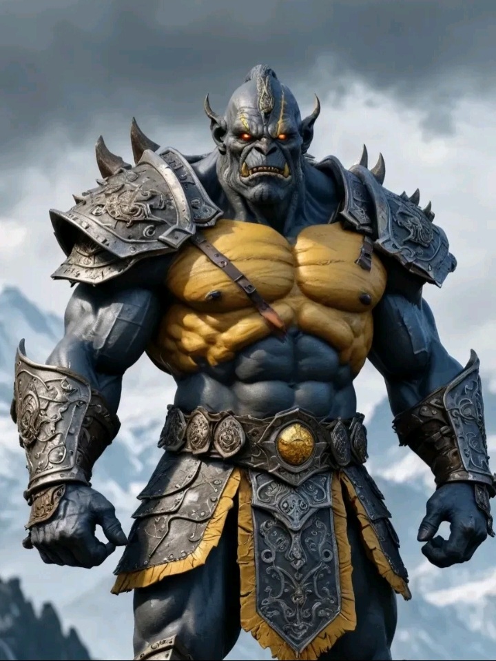 Dragthar, raja tertua orc raksasa, memerintah Kerajaan Batu-Tiang di puncak Gunung Kar’Thul. Setinggi empat meter, kulit abu vulkanik, mata kuning menyala. Pernah memimpin Perang Lembah Retak, menghancurkan musuh dengan tinju pemecah bumi. Bijak, tak haus perang, tapi saat bangsanya terancam, bumi bergetar oleh amarahnya.
